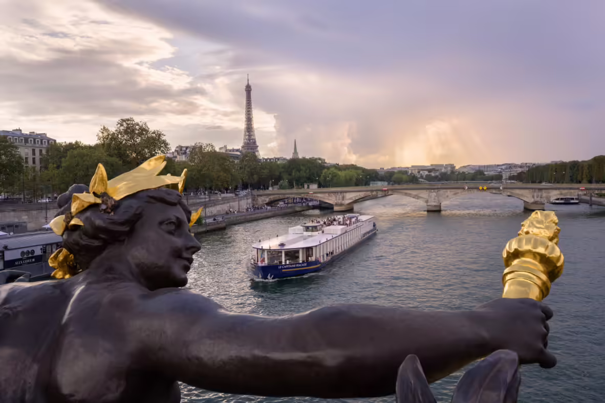 Le 24 décembre au soir, plongez dans l'esprit des fêtes avec la formule Noël, une expérience tout compris idéale pour un dîner croisière de Noël enchanté. Savourez un menu gourmand comprenant entrée, plat et dessert (menu végétal sur demande), accompagné d'une coupe de Bulle de Bassan, de vin sélectionné pour deux, et d'un café ou thé. Profitez de ce moment magique en famille, en admirant les paysages illuminés de Paris.